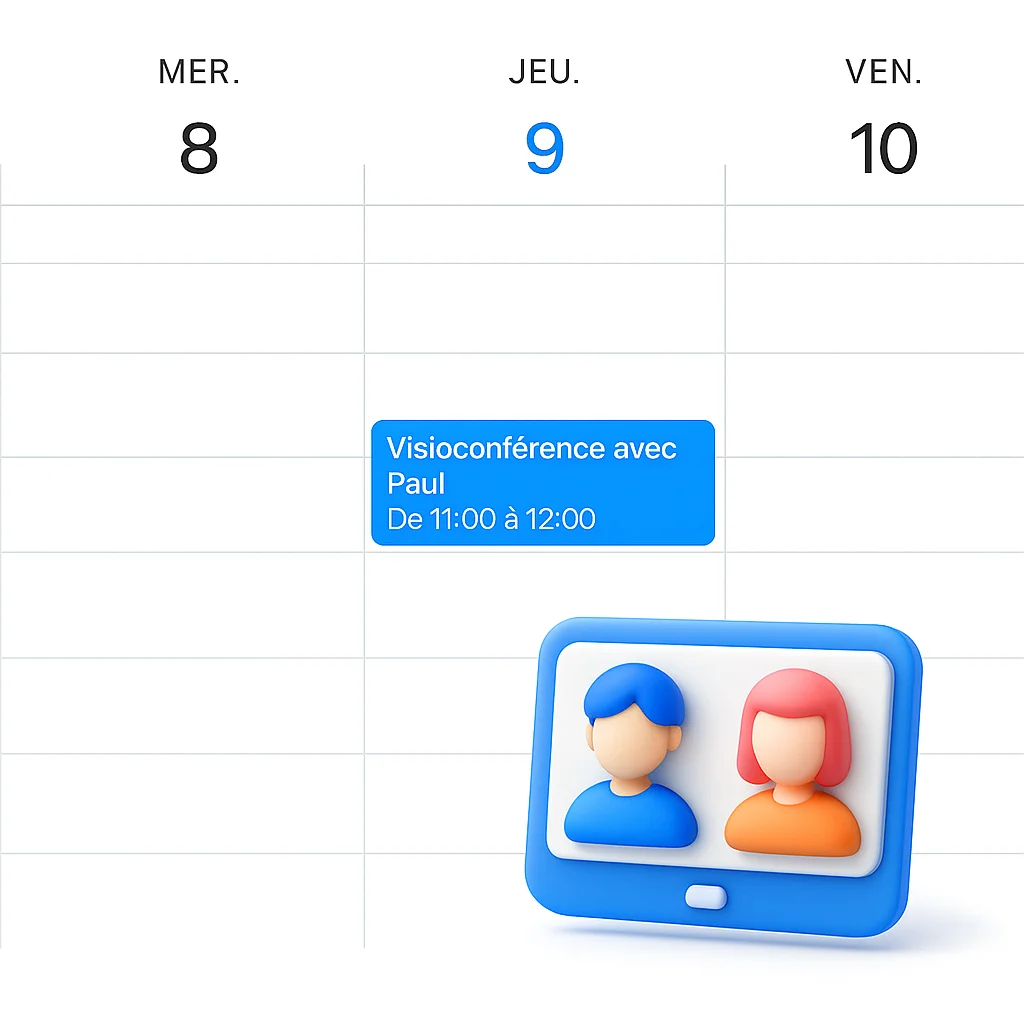 Planification : réunions, appels, rendez-vous (vocal ou message)